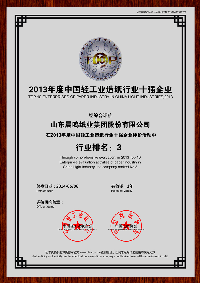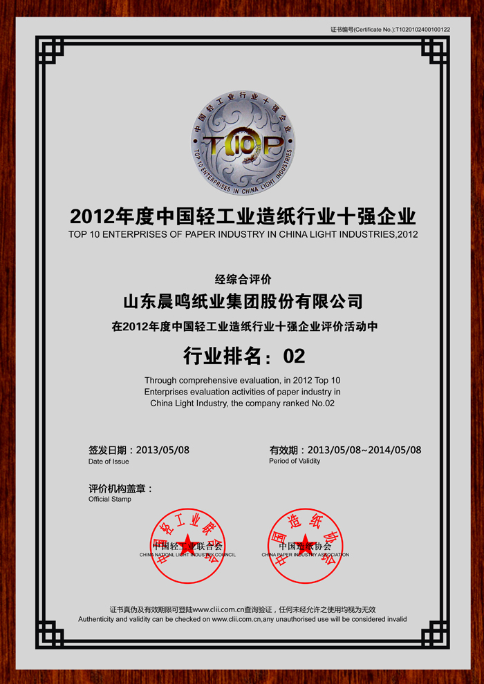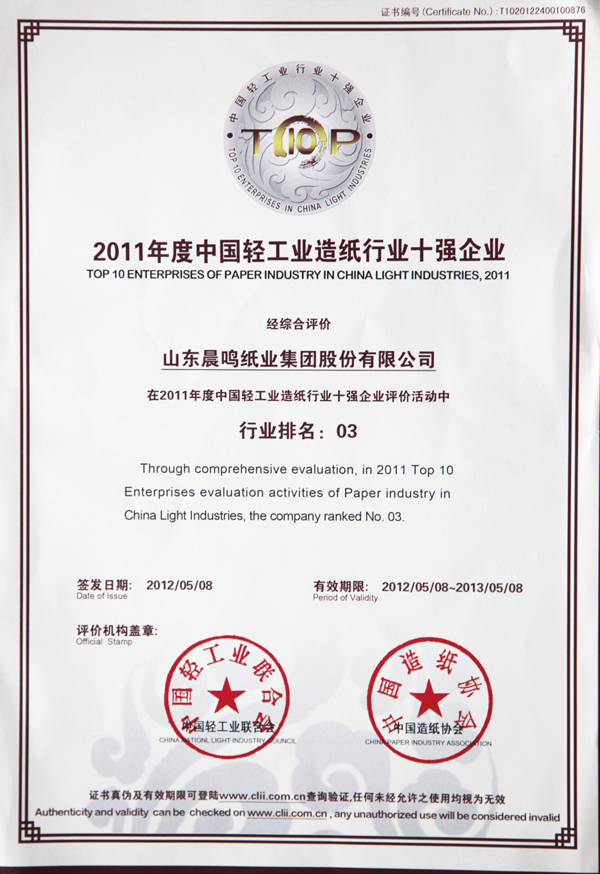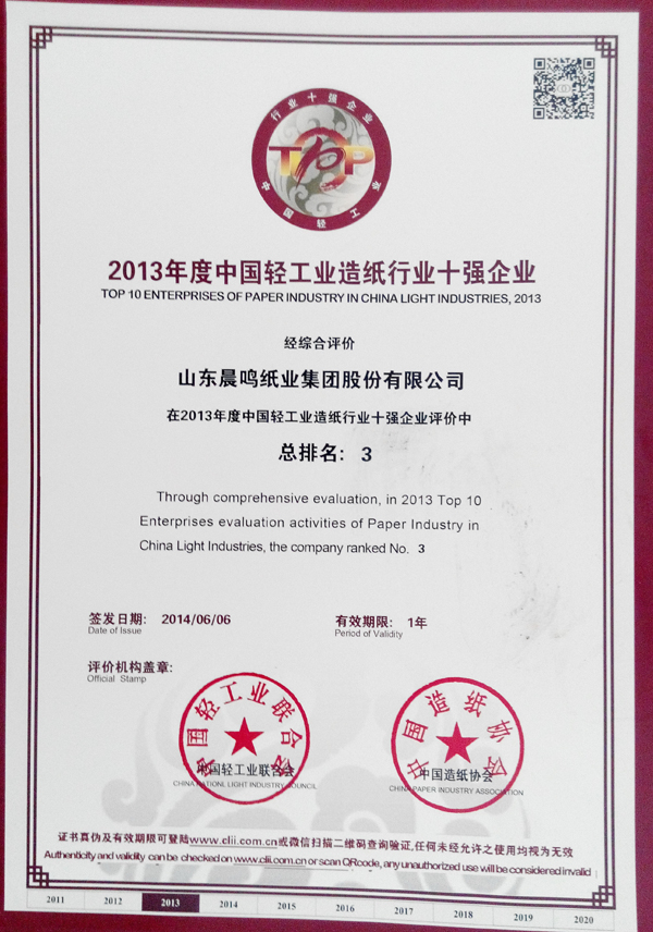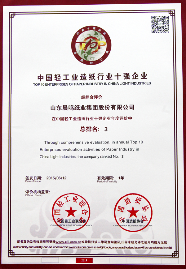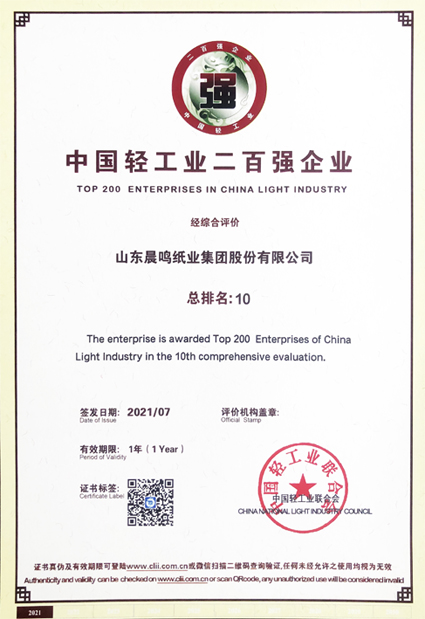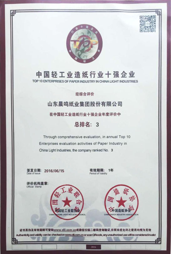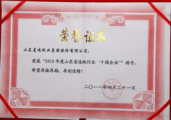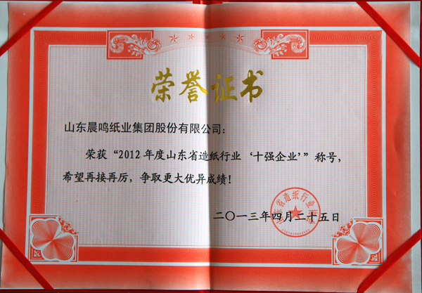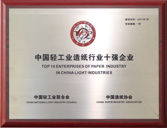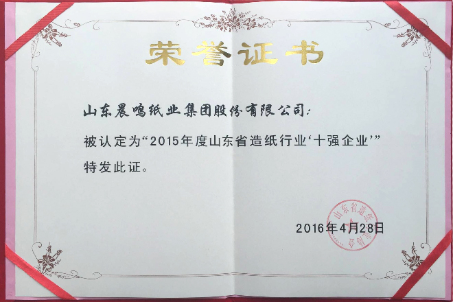 山东省造纸行业“十强企业”