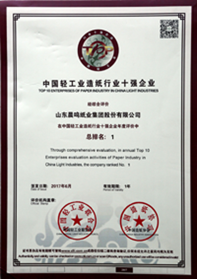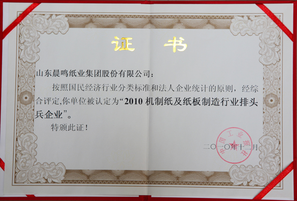 2009年度中国轻工业造纸行业十强企业第一名