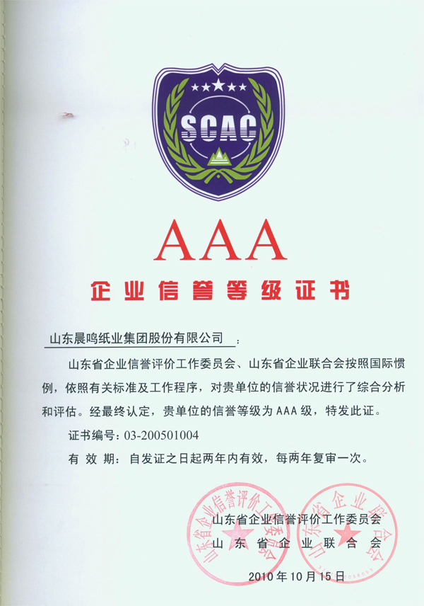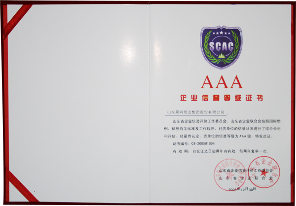 AAA企业信誉等级证书