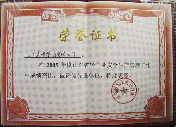 2005年度山东省轻工业安全生产管理先进单位