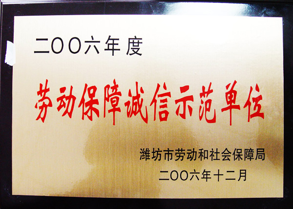 2006年度劳动保障诚信示范单位