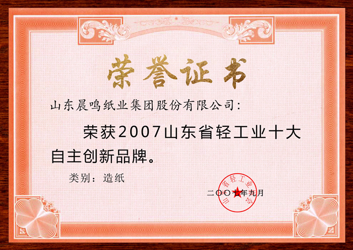 2007山东省轻工业十大自主创新品牌
