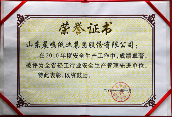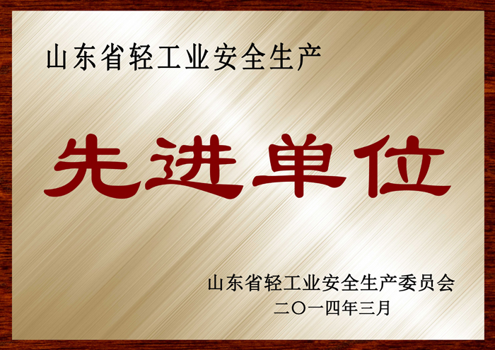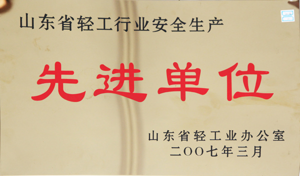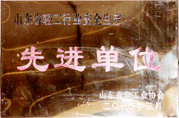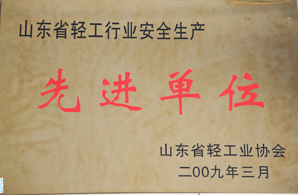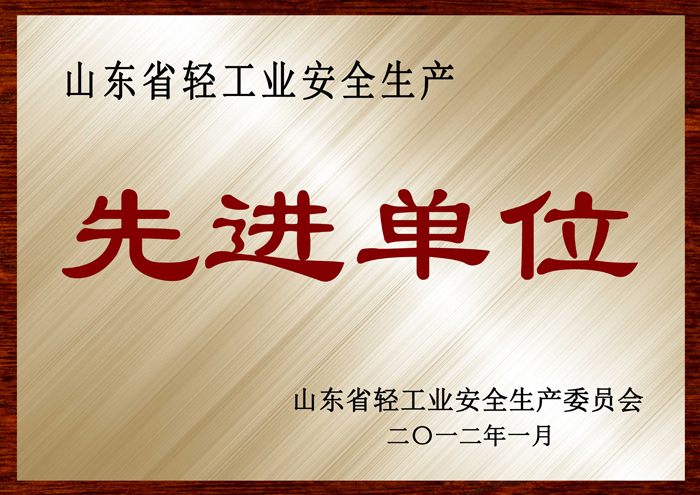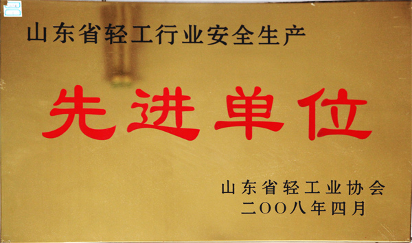 山东省轻工行业安全生产先进单位