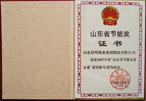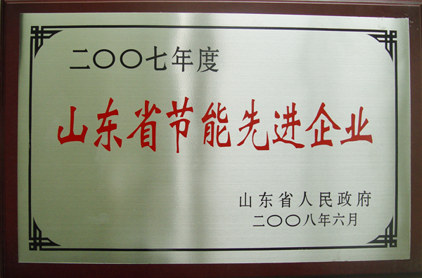 荣获2007年度山东省节能先进企业荣誉称号