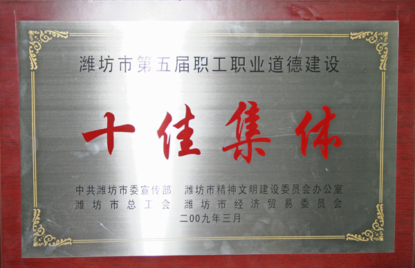 潍坊市第五届职工职业道德建设十佳集体