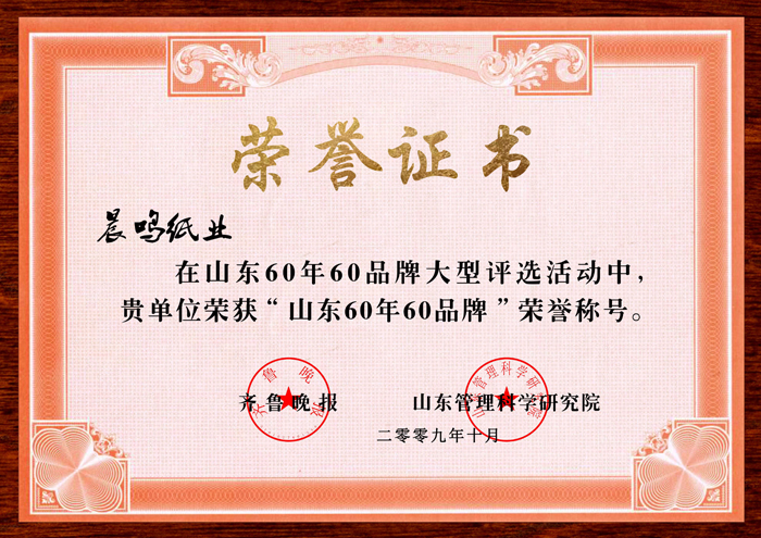 荣获山东60年60品牌荣誉称号