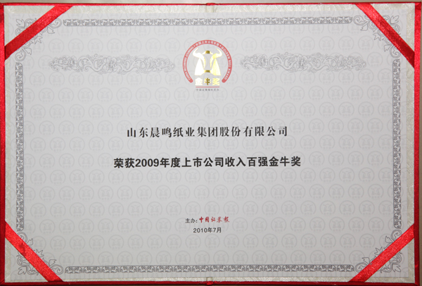 荣获2009年度上市公司收入百强金牛奖名