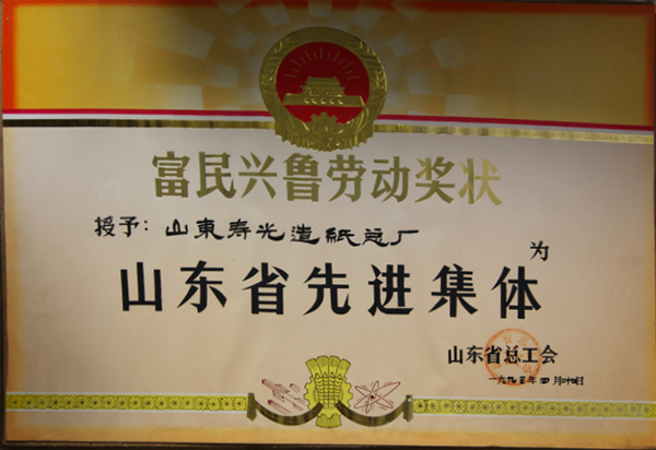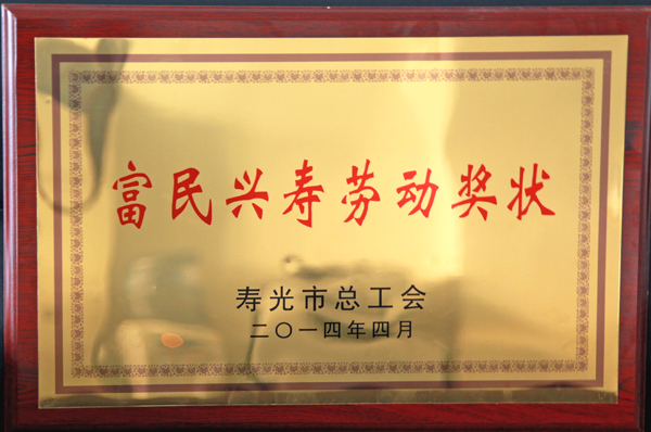 富民兴鲁劳动奖状—山东省先进集体