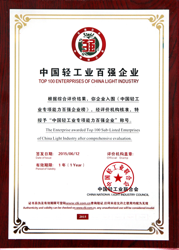 全国轻工业十佳企业