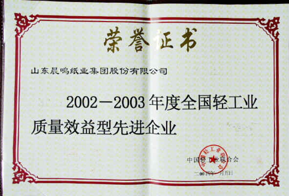全国轻工业质量效益型先进企业