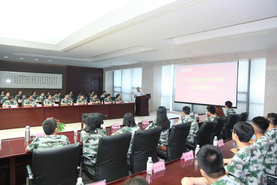 在办公楼举行欢迎仪式,欢迎2018届大学毕业生入职。根据集团公司发展需要,按照素质一流、择优录用的原则,来自全国40多所高等院校的74名青年才俊脱颖而出,加入x站