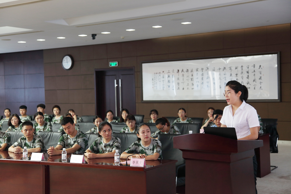法务部张晓敏作为优秀员工代表发言,她结合自身的经历告诉新员工,集团坚持企业发展成果与员工共享的理念,为我们搭建了广阔的发展平台,创造了良好的工作生活环境,我们应该不断学习提升,磨练意志,增强能力,干出一番成绩。