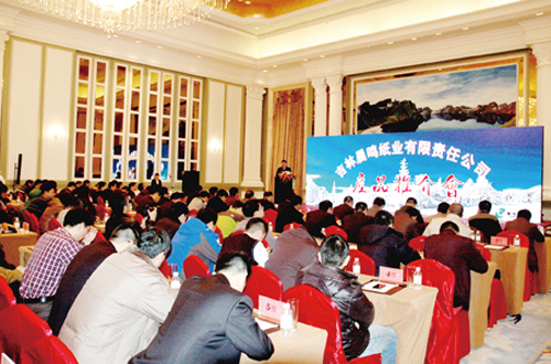 产品推介会在吉林市世贸万锦大酒店隆重举行。来自山东、北京、东北的65家客户105人参加了推介会。